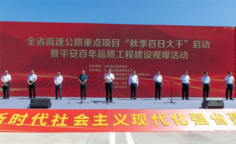 9月6日,全省高速公路重點項目“秋季百日大干”啟動暨平安百年品質(zhì)工程建設(shè)觀摩活動在公司董梁高速一標段舉辦。 省交通運輸廳黨組成員、副廳長張玉宏出席會議并講話,日照市委常委、副市長張佃虎,山東高速集團黨委常委、副總經(jīng)理李懷峰致辭?;顒訉?/span>2024年全省高速公路重點項目“秋季百日大干”活動進行了部署,并對全省38個高速公路建設(shè)單位授旗。 啟動儀式前,圍繞提升全省高速公路建設(shè)品質(zhì),組織開展了在建高速公路項目典型經(jīng)驗交流、平安百年品質(zhì)工程專題培訓(xùn),實地觀摩了由濱州交通發(fā)展集團權(quán)屬工程公司承建的董梁高速路橋一標智慧梁場和潮白河大橋施工現(xiàn)場。 作為“十四五”期間全省高速公路重點建設(shè)項目的參與者,工程公司嚴格按照集團公司“六個主題年”活動部署要求,精心組織,科學(xué)謀劃,扎實推進,率先完成梁場建設(shè),質(zhì)量、進度均處于全線前列,連續(xù)多次在業(yè)主各項檢查中位列第一,跑出項目建設(shè)“加速度”。 下一步,工程公司將以本次“秋季百日大干”活動為契機,錨定任務(wù)目標,搶抓施工黃金期,狠抓質(zhì)量、安全、環(huán)保等關(guān)鍵環(huán)節(jié),全力加快項目建設(shè),堅決完成年度任務(wù),為集團公司加快建設(shè)“雙一流”現(xiàn)代新山高和現(xiàn)代化交通強省建設(shè)貢獻力量。 廳機關(guān)有關(guān)處室單位、全省16市交通運輸局、高速公路項目參建單位等200余人參加活動。 |