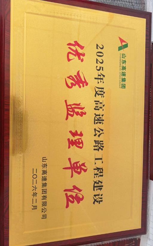 當(dāng)前位置:網(wǎng)站首頁(yè)>>監(jiān)理咨詢(xún)| 監(jiān)理公司榮獲山東高速集團(tuán)“2025年度高速公路工程建設(shè)優(yōu)秀監(jiān)理單位”稱(chēng)號(hào) |
